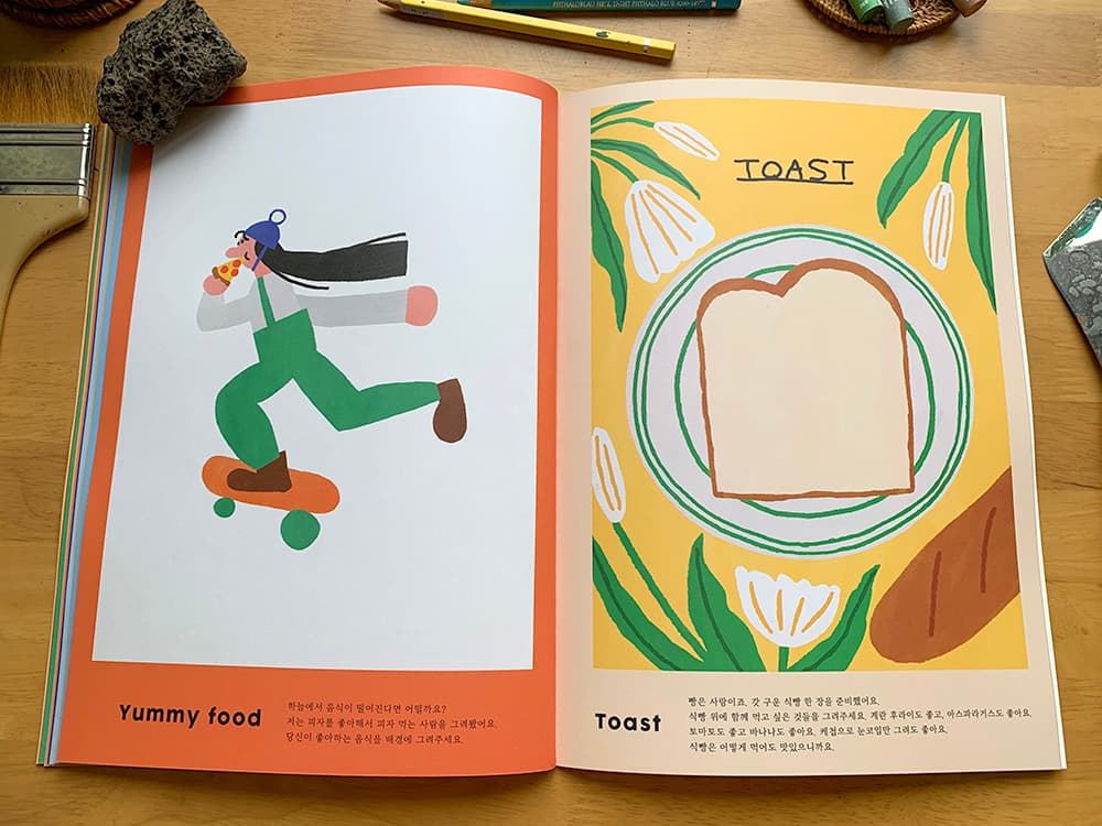 김잼의 그림은 재미있게 보이지만, 작업 시간은 항상 진지하게 다룹니다. 오래 그리고 싶기에 가볍게 대하지 않으며, 그 무게가 작품에 드러나지 않기를 바랍니다. 그림만큼은 언제나 가볍고 따뜻하게 남기를 원합니다.